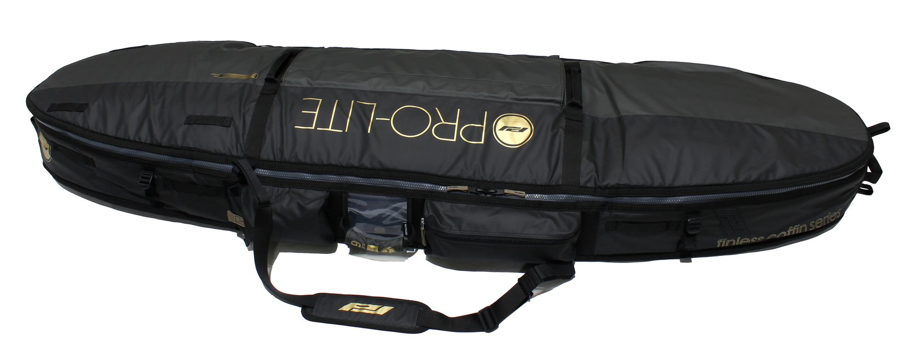 Planning on packing the shortboard, step-up and uh oh watch out, the mini-gun? Well if you're charging that hard you’re definitely going to need a bag that can handle your quiver. The Finless Coffin surfboard travel bag can pretty much handle anything you can dish out. With 10mm foam protection to give you more cushion when the baggage attendant be pushin'. Large exterior pockets with drainage will keep the crust off your boardshorts and the smile on your face. An internal divider provides the perfect separation for your boards. Need a place for your stash? Throw it in the secret pull out "storage" pocket. Don’t worry about salted zips on this bag; heavy duty molded non-corrosive zippers will keep the movement smooth for the life of the bag.