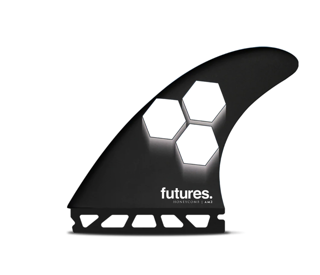 The AM2 Honeycomb designed by legendary shaper Al Merrick of Channel Islands Surfboards, is a large size thruster in the Rake template category. Featuring a balanced flex pattern, this fin's wider base provides increased drive through turns, making it ideal for high performance surfing. The center fin is smaller than the side fins for increased maneuverability.