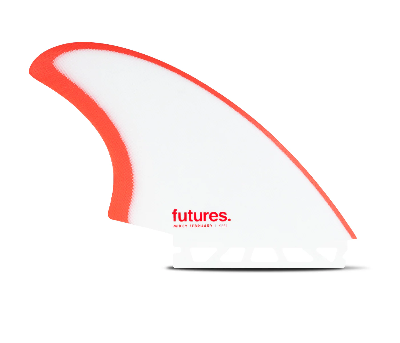 The Mikey February signature keel fin is designed to enhance performance on fish style boards. We preserved the traditional characteristics of a keel fin, such as hold and down-the-line drive, all while adding a looser, more responsive feel when the board is put on rail. We maintained the base length, area, and tip rake to retain the keel’s essence, but reduced the area through the center of the fin to increase responsiveness, just as Mikey envisioned. Constructed from solid fiberglass, this set features inverted colorways between the left and right fins. This fin set performs exceptionally well across a wide range of traditional fish boards.